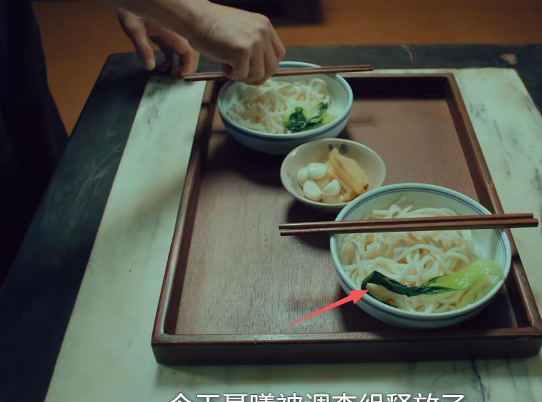 这镜头一扫,一碗白面条,只有一片菜叶子,真的太寒酸了。