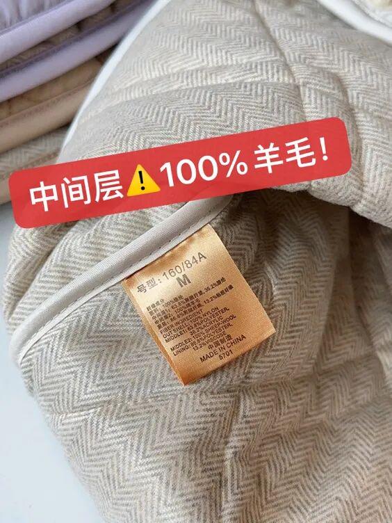 材质是百分百绵羊毛+绒,双夹层,真蓄热;