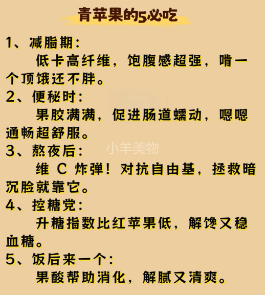 很多不爱吃普通红苹果的小伙伴,对青苹果却情有独钟,是因为它不仅富含维生素、纤维素、果酸、天然果胶,黄金酸甜比也非常nice。