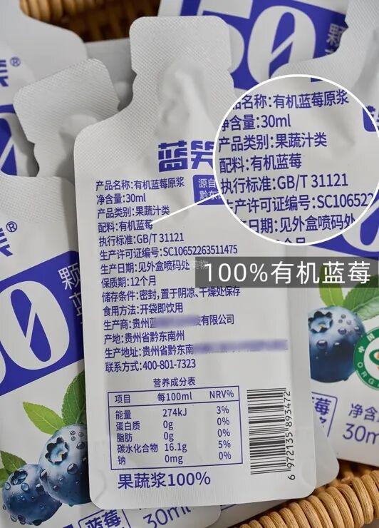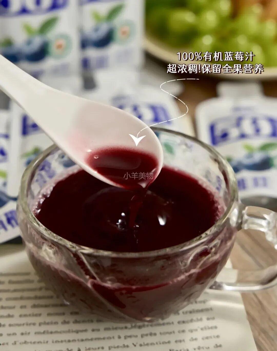 超浓郁的有机蓝莓汁,味道就是蓝莓本身的酸甜,每一口都富含超多种维生素和微量元素,孩子越喝眼睛越亮。