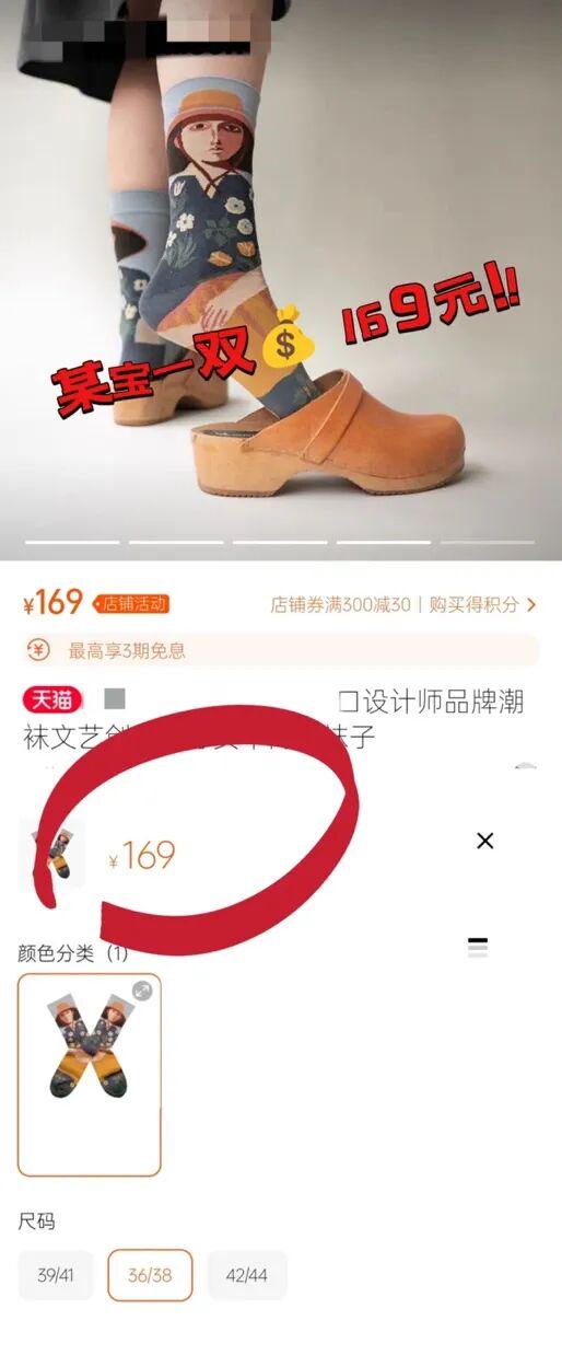 换季也该换中筒袜了,某宝一双卖到169元的名画袜子,特别又时尚,好看是好看,我是不舍得买。