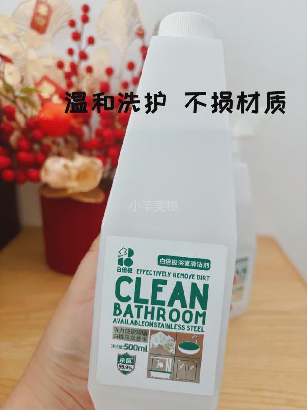 白倍极浴室水垢清洁剂强烈推荐给大家,是非常温和的有机酸,气味清香,不刺鼻,用它真的能毫不费力就get一个新卫生间,除jun率达到99.9%!