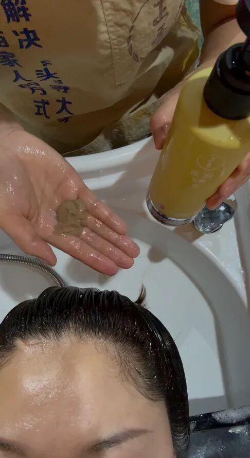苗岭天然草本+稻米发酵滤液,九道古法、九蒸九晒,再经过12小时熬制后,即可用来洗头。