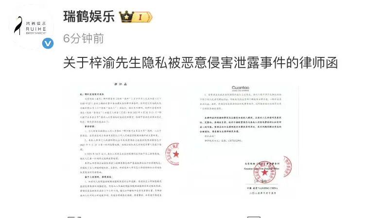 15日,梓渝经纪公司瑞鹤娱乐就酒店监控泄露一事发布律师函,要求酒店:说明监控视频泄露原因并公开道歉、赔偿损失,若未在指定期限履行上述要求,将采取诉讼、举报等法律手段。 随后,音乐节主办方还公开了酒店的保密条款。