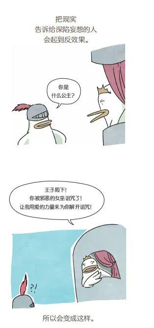 郑诗娜护士讲道,“90% 的躁狂病情会复发”,因而最终尽管鸭娜经历了漫长的治疗恢复了很多出院了,但是也需要按期复诊。书中多处也用漫画的形式对各种心理疾病的情况进行了趣味的科普。