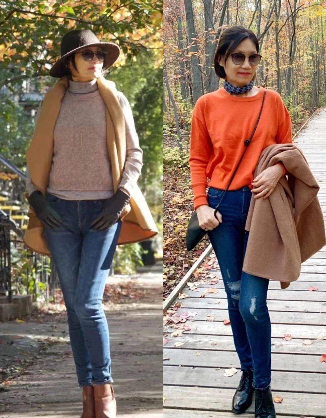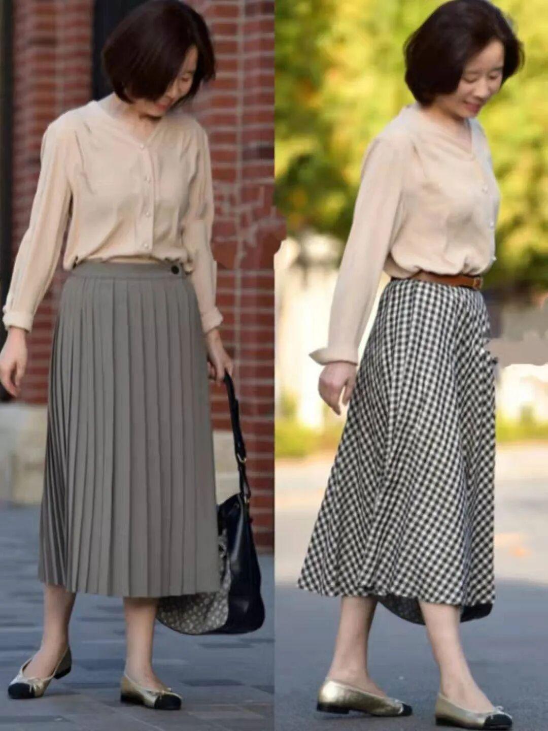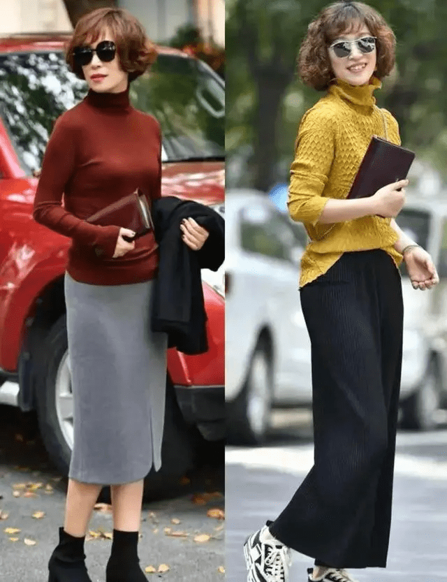 面料直接决定穿搭的“档次”,60+女性选衣服,一定要避开易起皱、没垂感的廉价面料。秋天大家可选羊毛和醋酸,保暖又显气质,穿起来还不容易变形。
