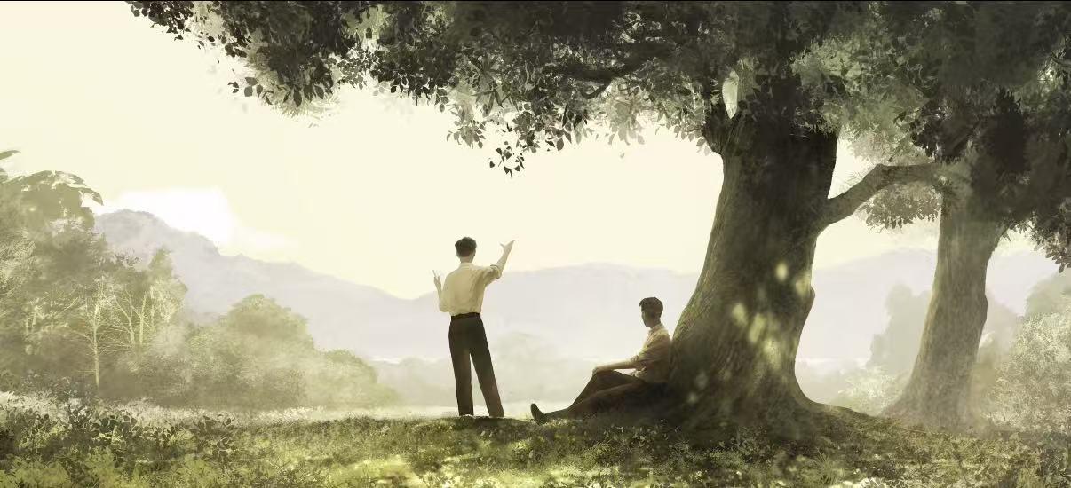 《九零后》片中插画:杨振宁与邓稼先吟诗怀古。
