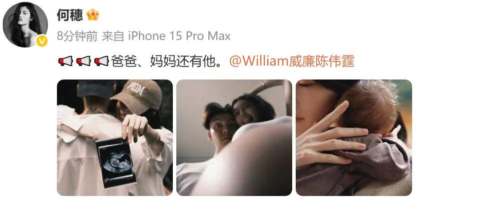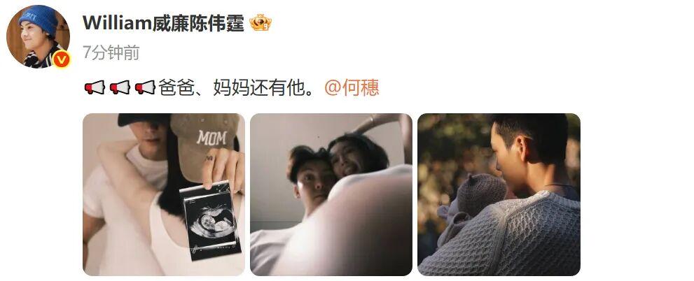 两人配文“爸爸、妈妈还有他”,并晒出甜蜜一家三口照。