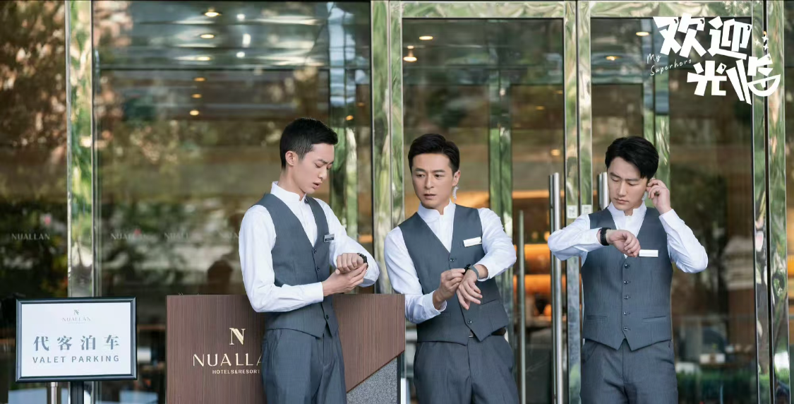 《欢迎光临》中,黄轩饰演的张光正和白宇帆饰演的陈精典,是酒店的门童同事兼挚友。