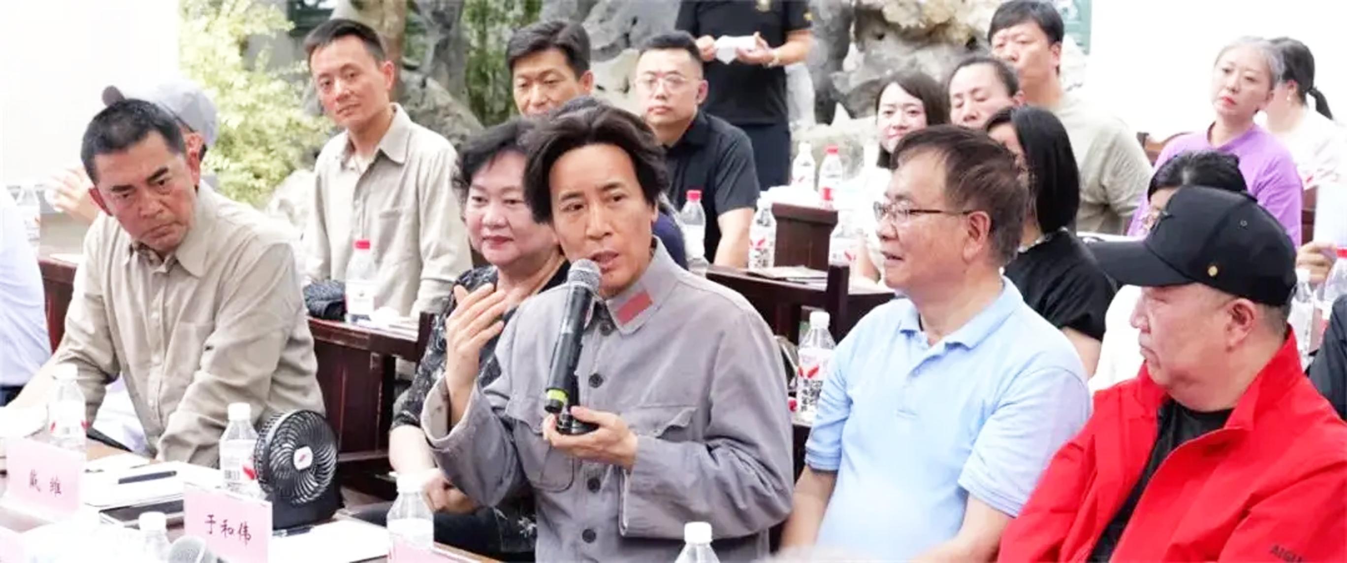 此前在开机座谈会上,于和伟穿着戏服参与讨论。