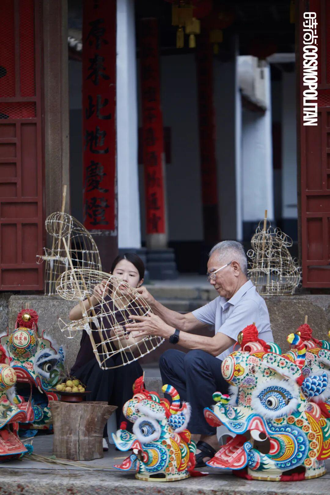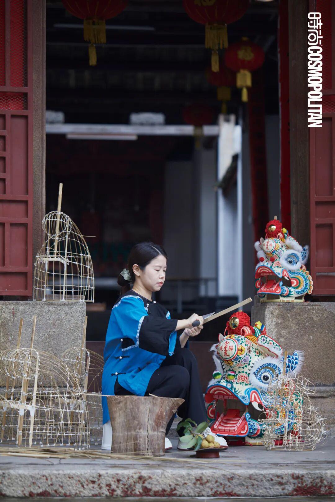 舞动是一种考验。麒麟头的结构若松,舞两趟就散;彩绘若艳而不稳,入场就没神;机关若迟钝,一眨拖泥带水,灵气全失。刘金星说:“做头不是做给自己看的,是做给舞队用的。”一个好头,要轻便,舞者才肯抬;要牢靠,队伍才敢用;要有神,观众才会期待下一次的眨眼。蔡贝如第一次看见自己扎的麒麟被真正请去舞,也是如此,心里忐忑。她怕支撑不住,怕自己还不够熟练。入师门半年多,蔡贝如扎的麒麟头完工,被“点眼”后在舞台上眨眼,舞麒麟者是小小的少年。那一瞬间,她觉得几百年的手艺在她手里复活了——麒麟清秀灵动,它代表仁义、添寿、吉庆;在锣鼓喧天、鞭炮齐鸣中,少年麒麟在街巷起舞,“那是我扎的麒麟头”,她看着人群涌动,在热闹之外欣喜地等待着。