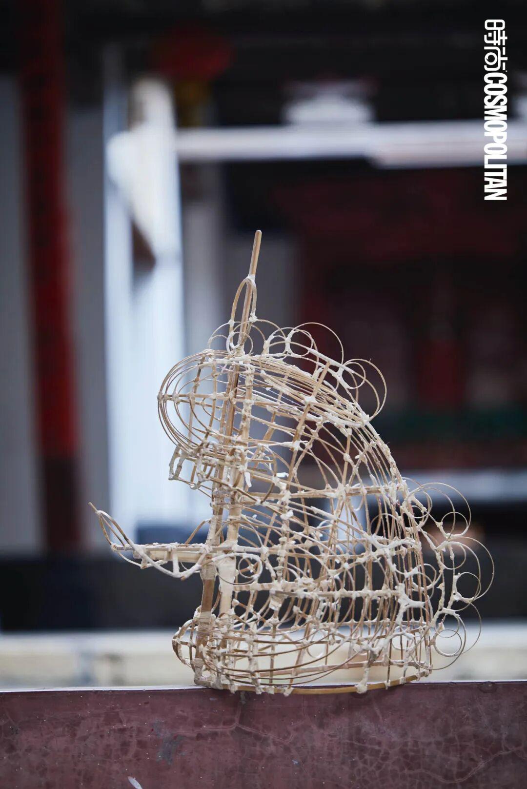 扎麒麟,先扎骨。竹篾挑得讲究,劈开时纤维如丝,声音脆得像一声冷笑。学徒心急,往往在指尖听到“啪”的折断声。竹子从不迁就,它逼人心慢下来,手与心若不一致,就只能收获碎片。蔡贝如向我们介绍:“一只麒麟头需要用上百条竹篾,约800个扎点,起形时内框要用宽篾承力,头背则用细篾轻巧。交叉之处以扎纸和糨糊固牢。”她白天有工作,大多夜晚磨炼技艺,夜深灯下,竹篾的影子在墙上交错成未完成的骨架。