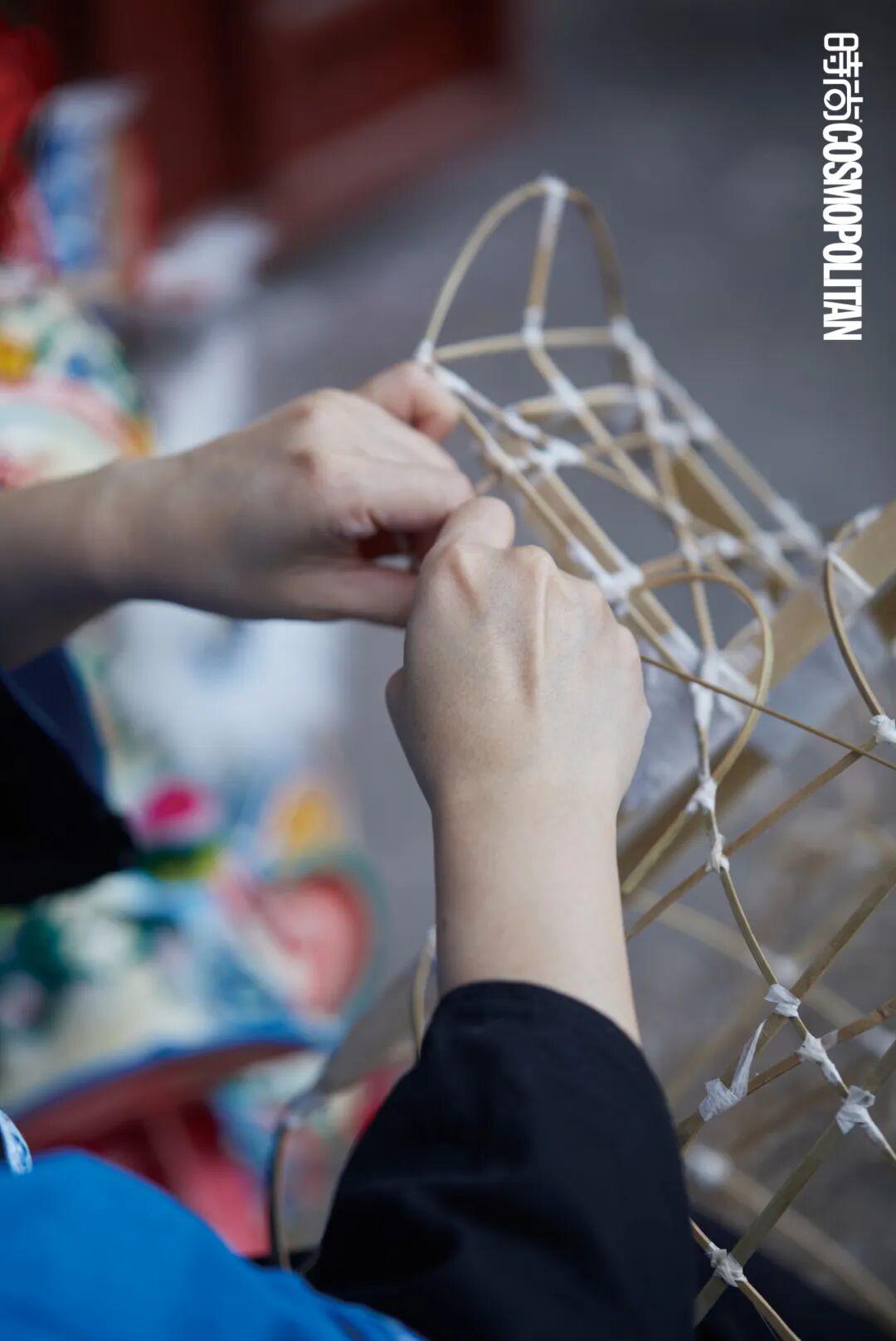 缘分也要用坚持来兑现。从那以后,她就开始每天抽空就往作坊跑。白天她是社区的办事员,按部就班;晚上,她在家钻研手艺。竹篾成了第一个难关。竹子太嫩,会在弯曲时直接折断;太老,又硬得劈不开,折竹篾要学会放慢速度,再去弯,顺其自然才发现竹篾能顺从地成形。这种慢工夫,贯穿在她学艺的每一步里。竹篾扎好之后要糊纸,宣纸一张张撕开,贴到竹骨上。表面不可以有褶皱,也不能空鼓。糊纸要一层一层叠,才能坚固。