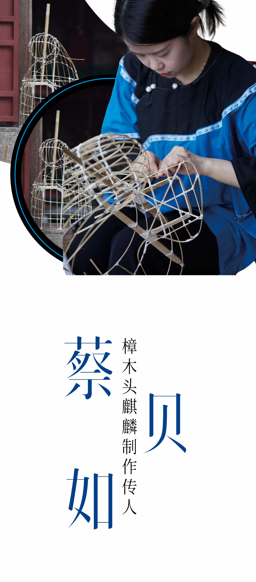 她说,刚开始她也会出错,不是漏扎一条竹篾,就是纸贴得不均匀。拆掉重来是常有的事。慢慢地越来越熟练,不再“返工”。有一天,刘金星忽然说:“去倒杯茶。”她没明白,后来才知道,这在行里意味着“拜师茶”。她顺势行了礼,就这样成了刘金星的徒弟。这件事很简单,却有着不同寻常的意义。因为她是刘金星十年来收下的第一个徒弟,也是近百年来的樟木头麒麟制作的第一位女弟子。“传男不传女”并不是一句空话。蔡贝如自己也承认,她最初有过顾虑,怕自己因为是女性而被拒在师门之外。但刘金星并没有被“规矩”束缚,他看重的是她的坚持和悟性。刘金星很少表扬别人,但在别人面前经常说:“她一讲就懂,一看就会。”