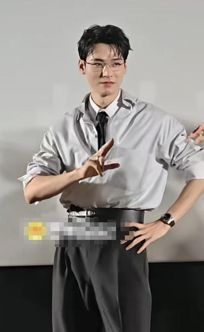 似乎是白色衬衣之外又套了一件灰色衬衣,显得整个人鼓鼓囊囊的。