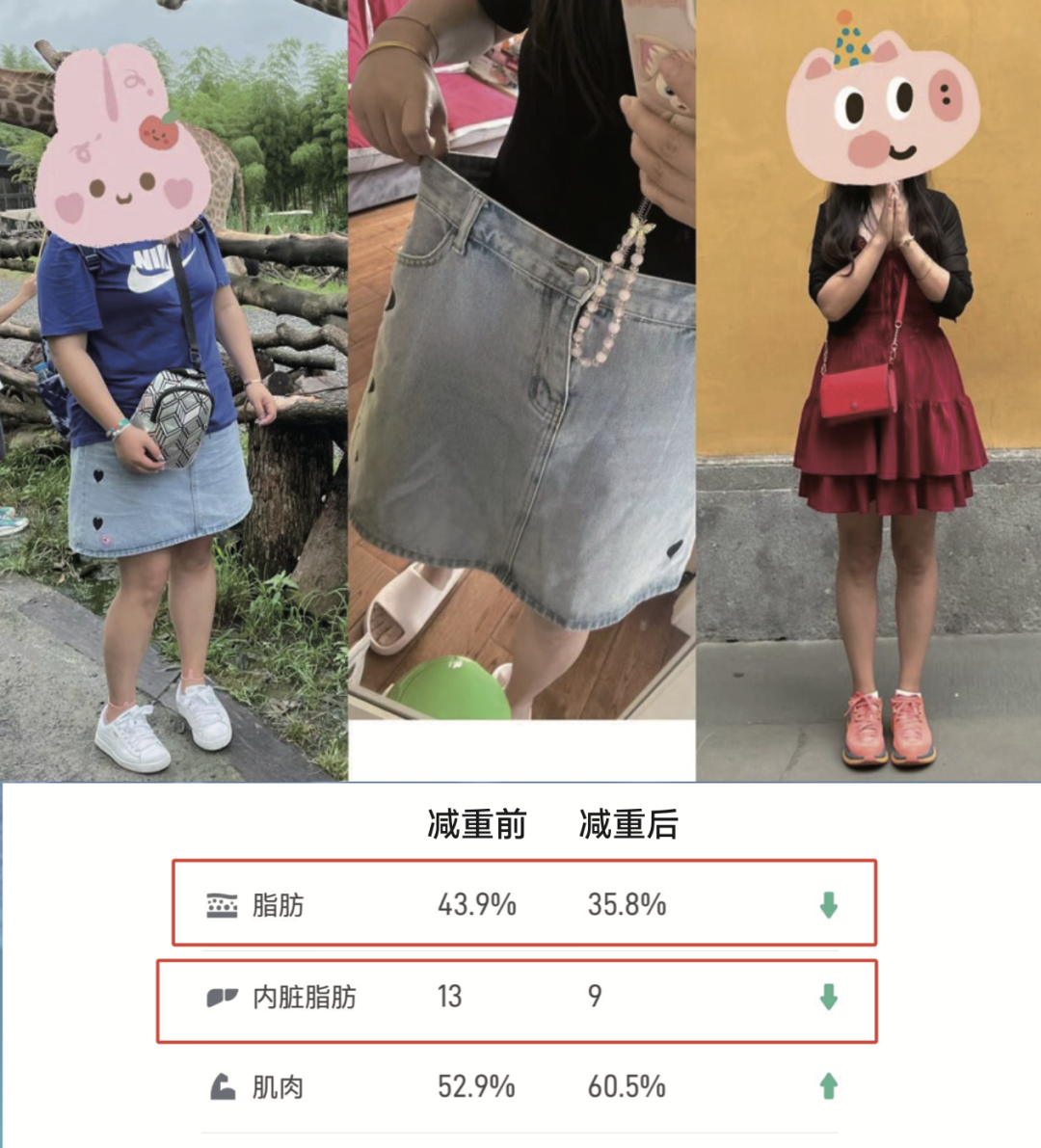 姐妹的各项指标也是让我很眼馋,脂肪含量降低了8.1%,连内脏脂肪的指标都下降了!