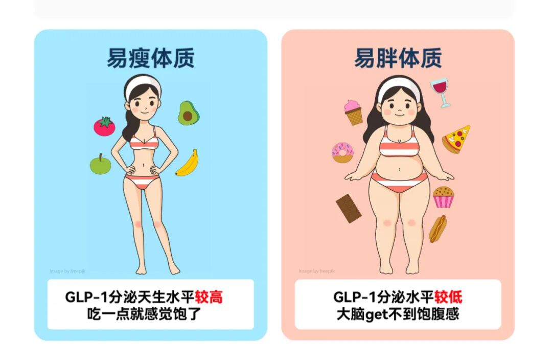 讲真,减肥效果不好,千万别为难自己,从身体上找找原因,有的人就是天生GLP-1分泌水平较低,大脑难以接收到饱腹感信号导致的,导致减肥难以有显著效果。