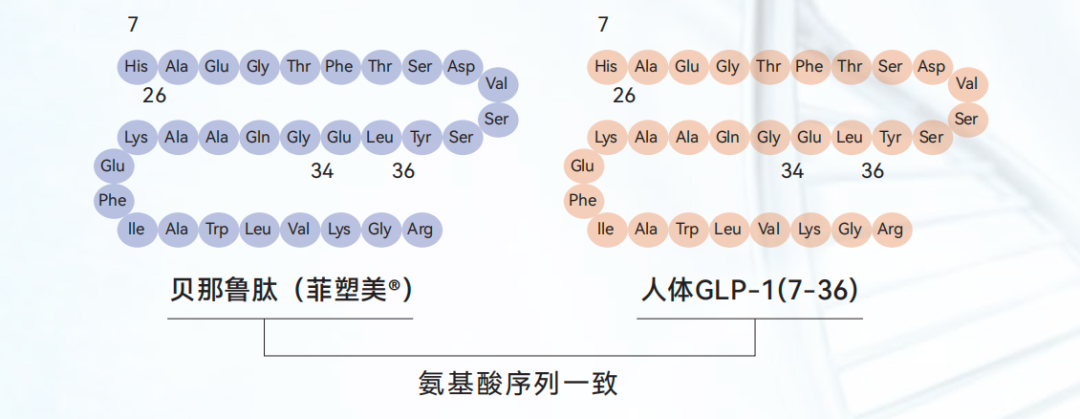 贝那鲁肽与人体自分泌GLP-1氨基酸序列100%一致,是目前市面上唯一一款全人源GLP-1类减重制剂,适配身体的才是最好的。