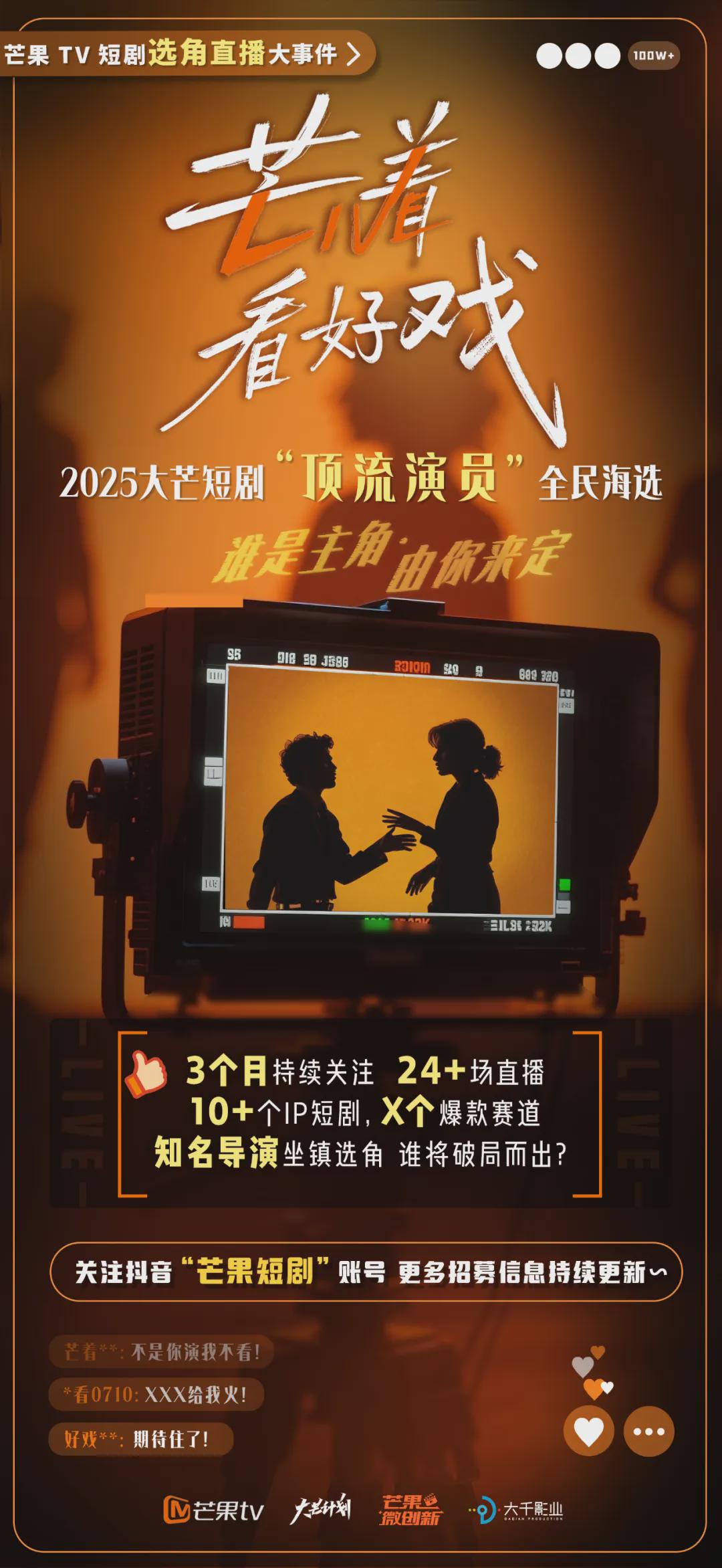 芒果:我们认为最成功的部分其实有两个,一是在整体模式上构建了一个“用户主导、产业反哺”的良性内容生态闭环,真正把选角权交还给了用户,用户不仅是观看者,更是内容的生产者。而且,传统的短剧生产模式是“制作-上线-宣发”,用户是在成品出来后被动接受。我们想在剧本开发阶段,就将这些IP的“选角”过程本身,打造成一个持续性的直播内容事件。通过直播的互动,为IP提前积攒第一批核心粉丝。所以,它本质上是将后期宣发的一部分功能,前置到了创作的最开端。
