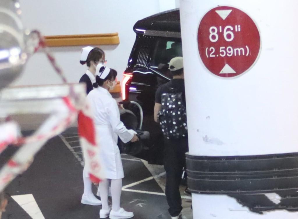 在医院待了一个小时十五分钟后,郭富城和岳父岳母来到医院的停车场,与他们同行的还有2名护士。
