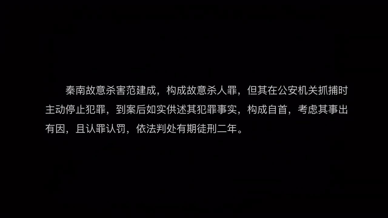 而秦南也被判犯故意伤害罪入狱,但因自首且认罪态度良好,被判两年。