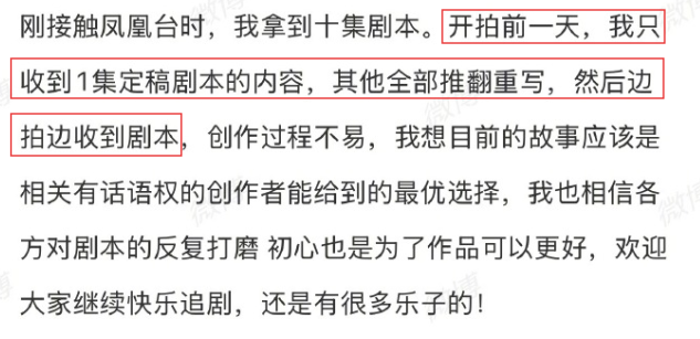 后有女主彭小苒出面「灭火」,却曝出开机只有1集剧本,其余都是边拍边改。