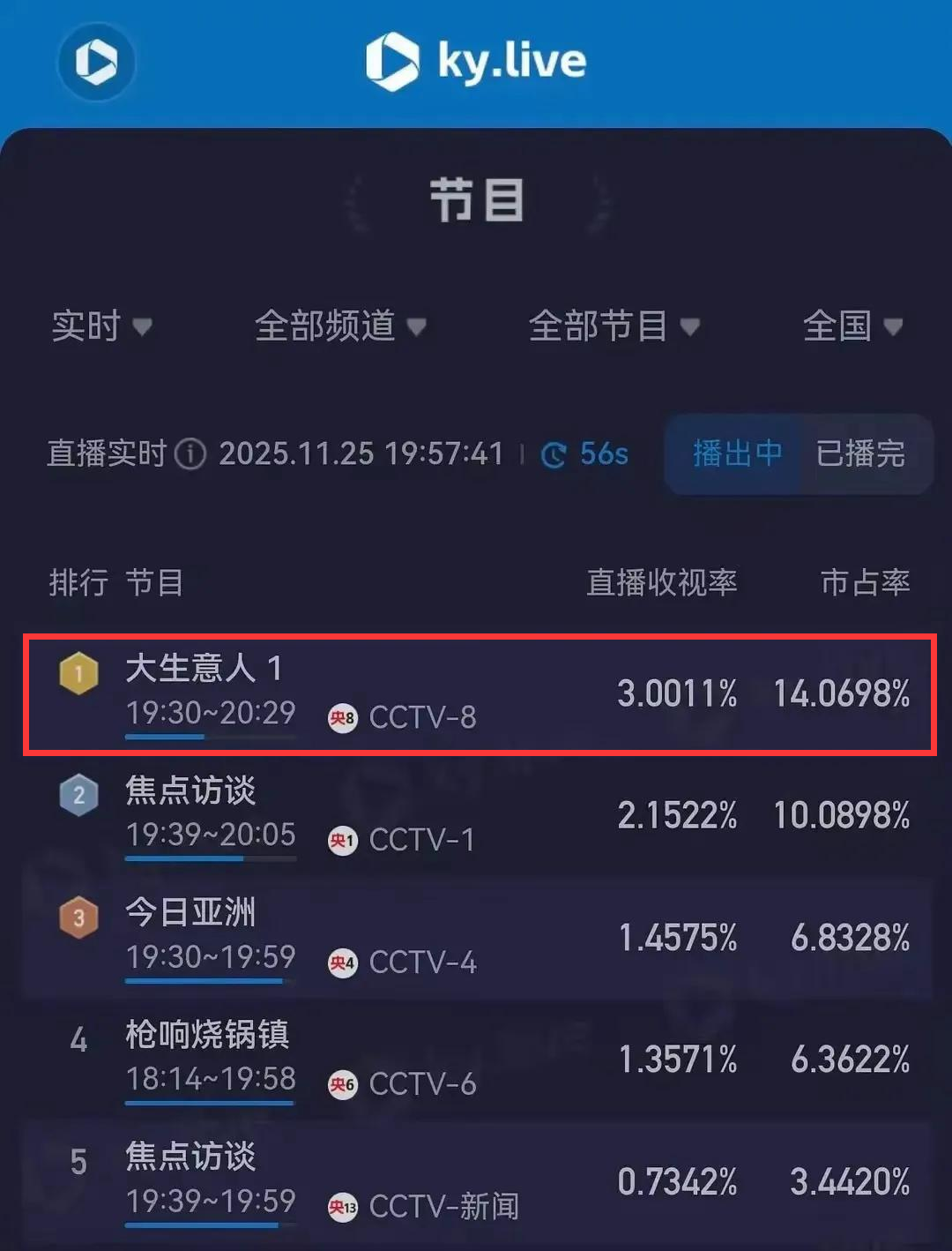 这么多熟悉的演员凑一起,《大生意人》一开播就气势如虹,半小时收视率突破3%。