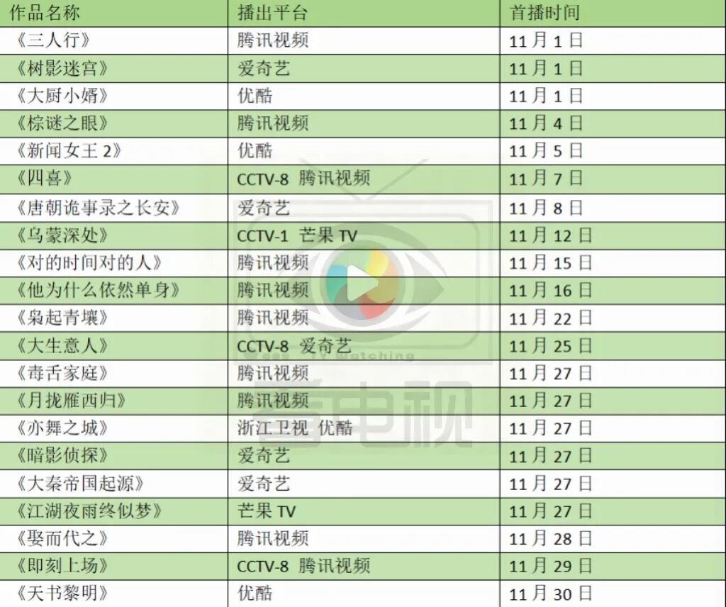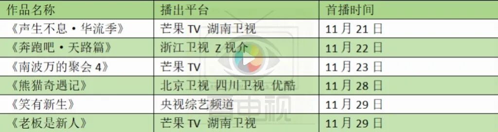据“看电视”的不完全统计,11月综艺上新6部。