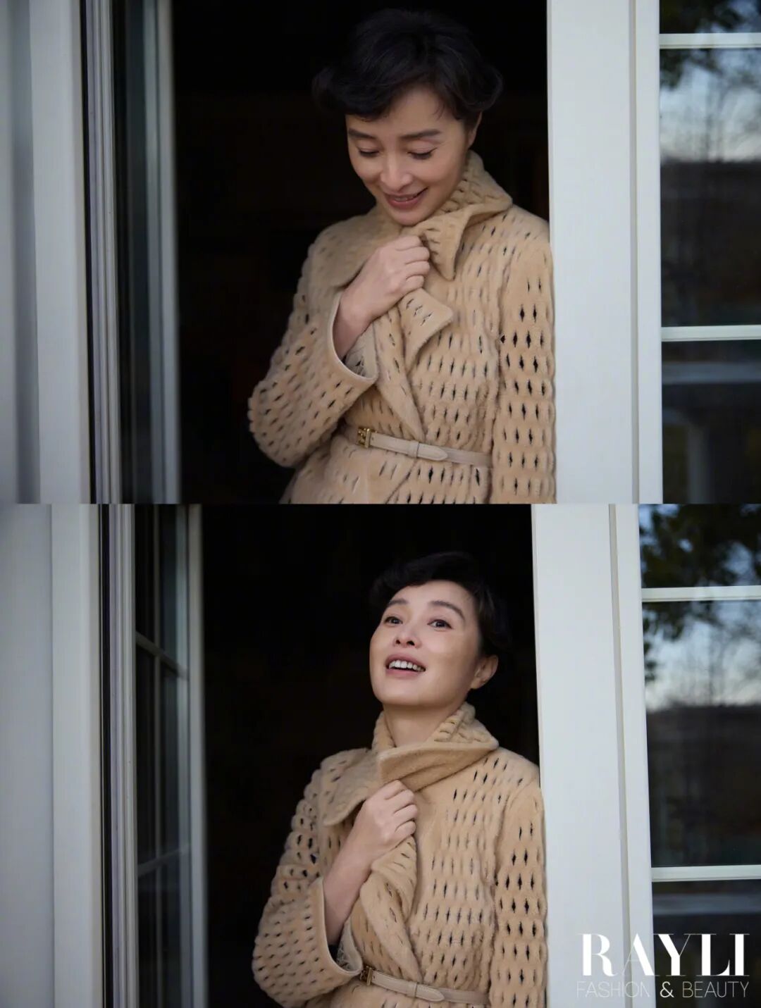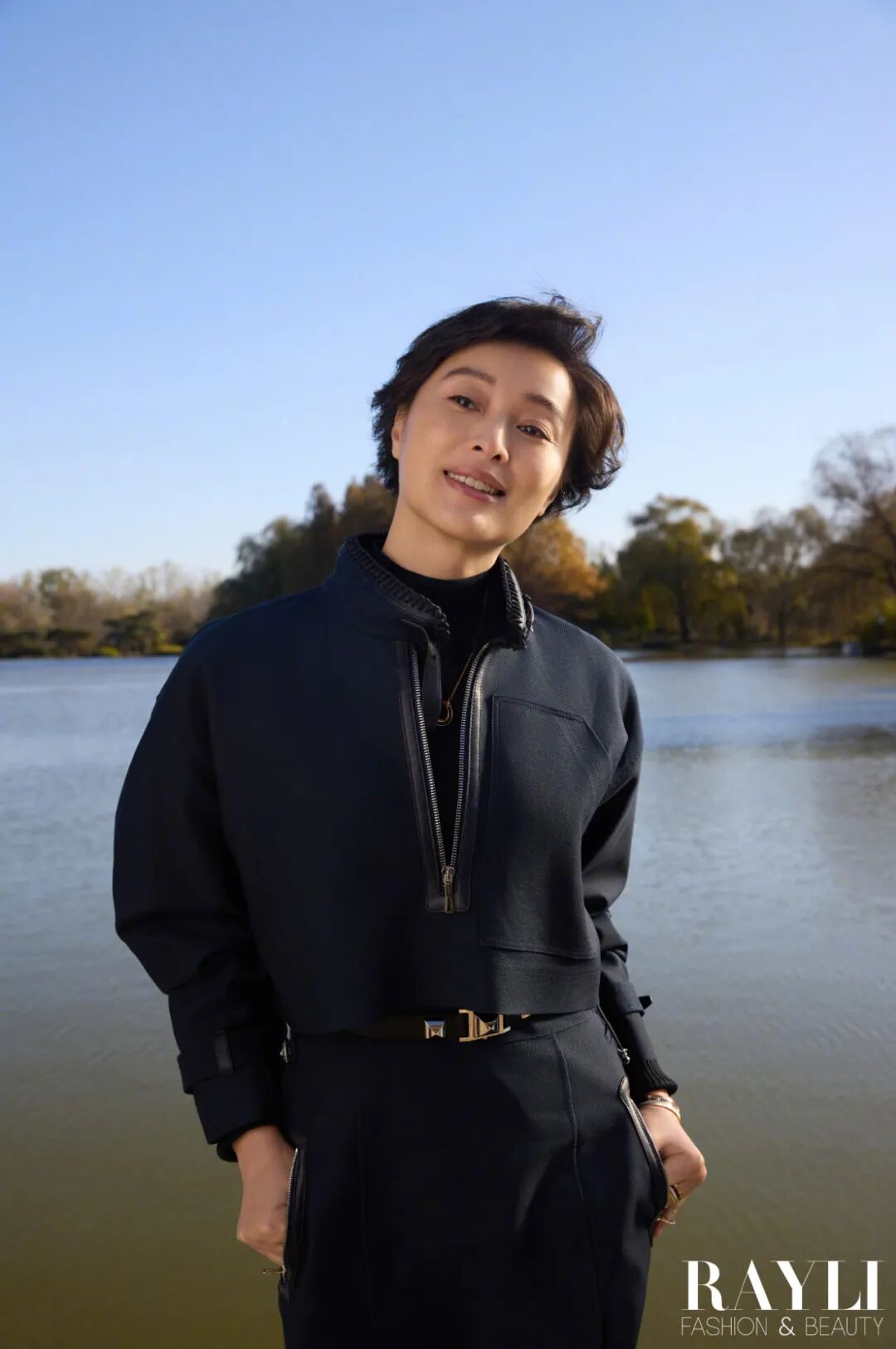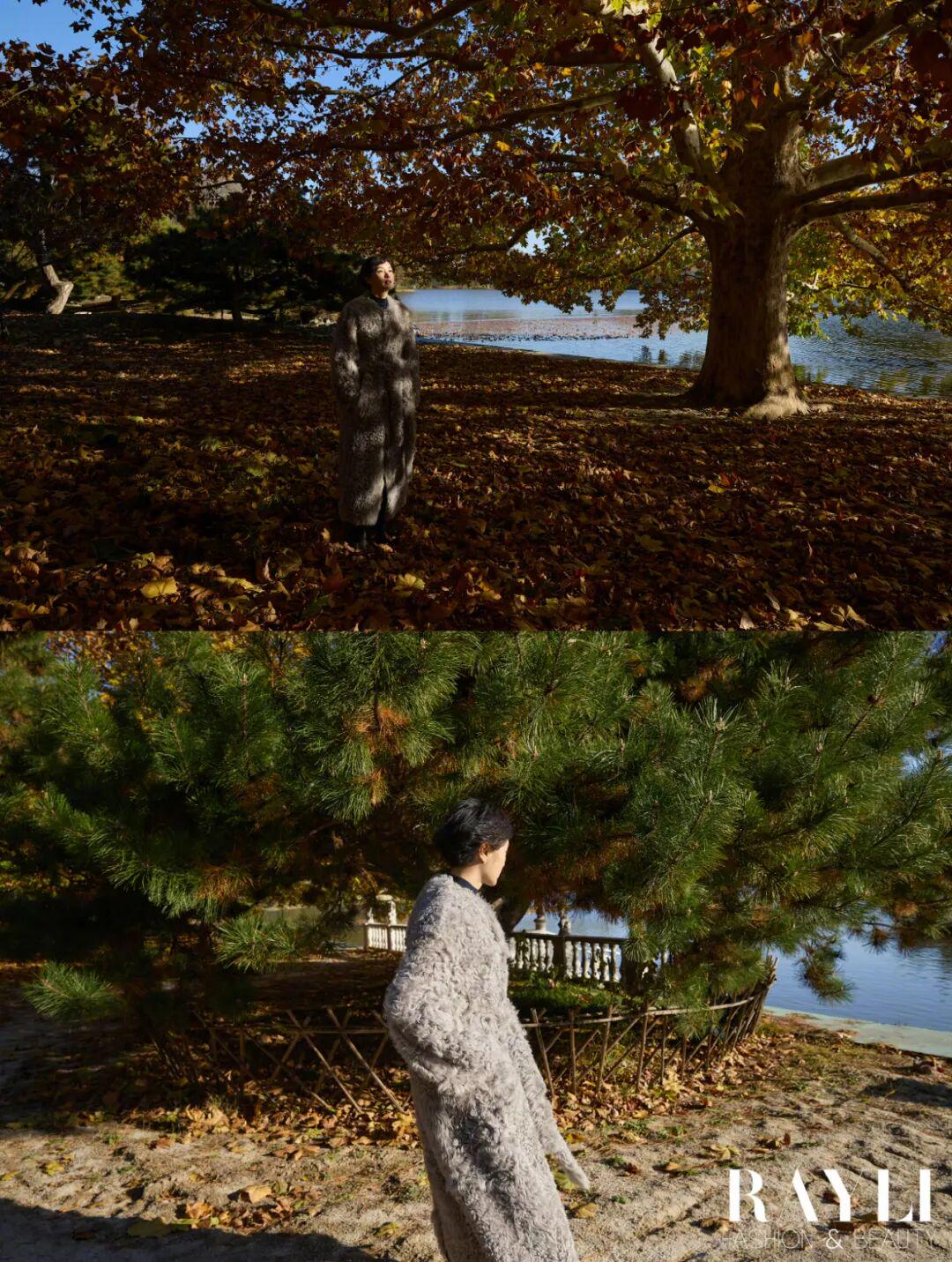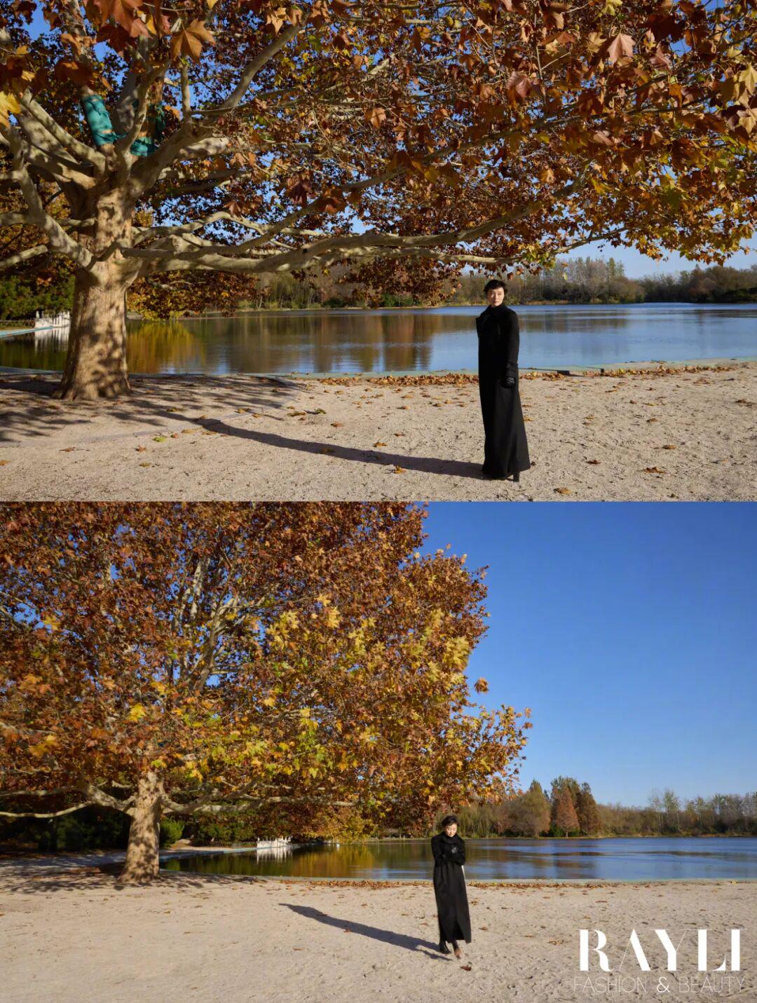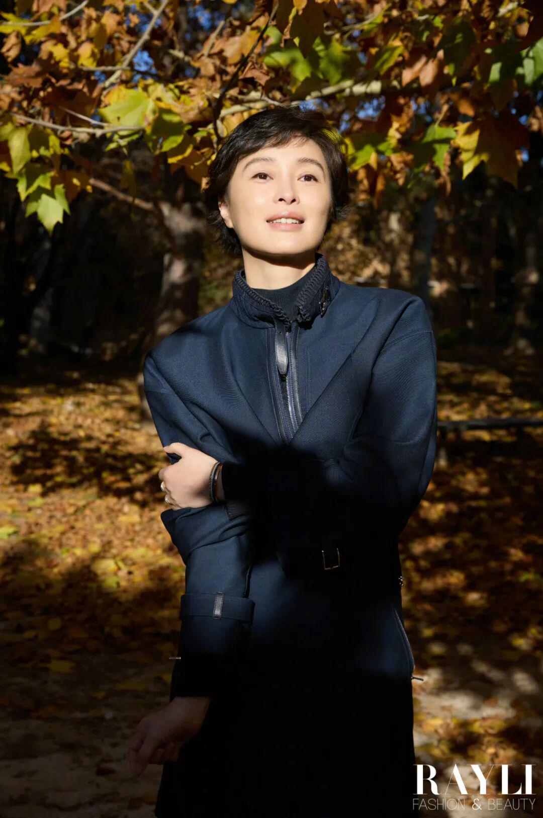 在我们的湖边拍摄现场,制片跟她解释说先别穿大衣拍,省得穿了脱掉体感更冷。她笑道:“没事,我们演员都是扛冻的。”拍完盯着显示屏说“最好选特别自然的”,再看了看照片表示:“有动感,就好看。”