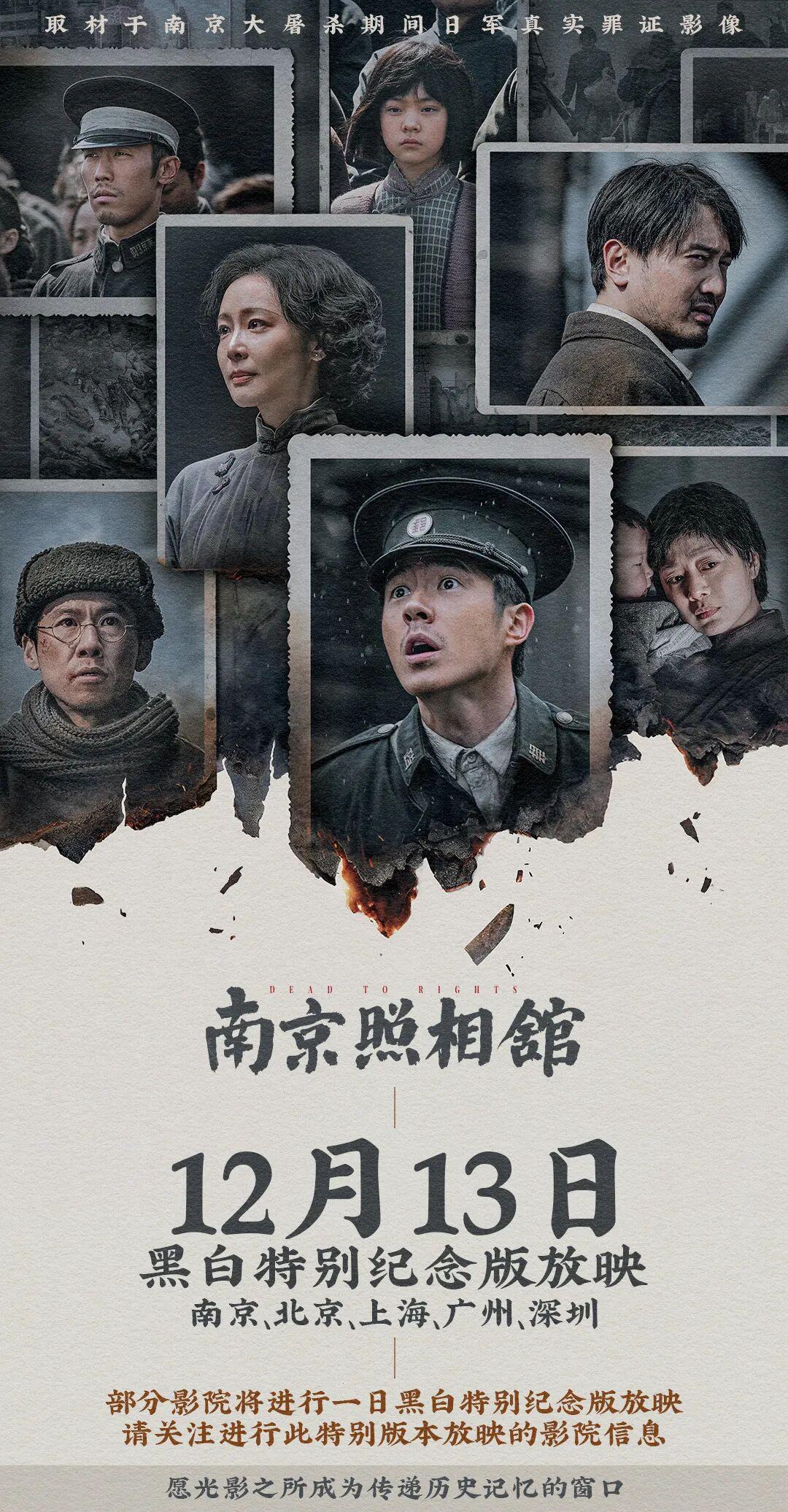电影《南京照相馆》将于12月13日在南京、北京、上海、广州、深圳等地的部分影院进行黑白特别纪念版放映。