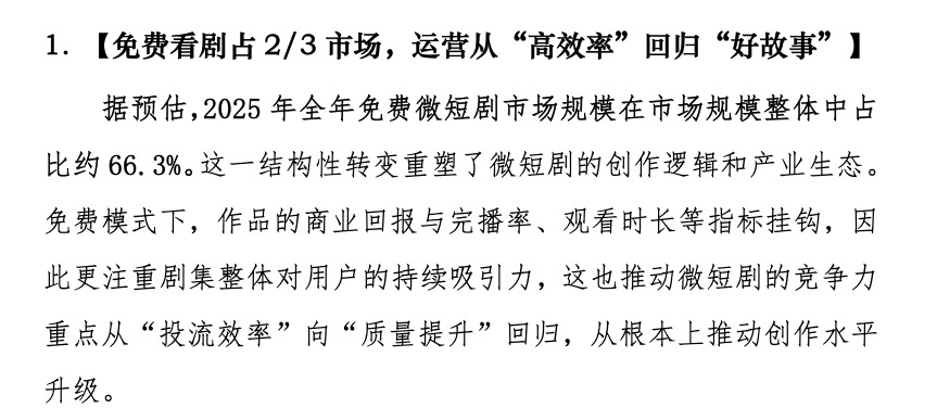 有个数据很能说明问题,《中国微短剧行业发展白皮书(2025)》里提到,免费微短剧的市场规模,今年已经占到了整体市场的2/3。