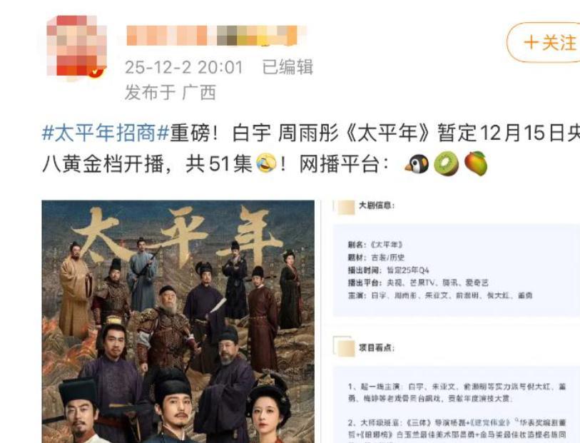 而《太平年》的野心,远不止做一部“年度剧王”。
