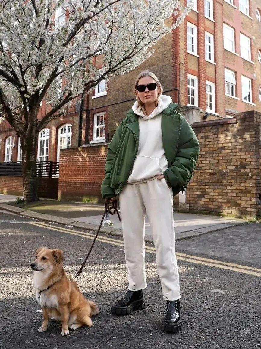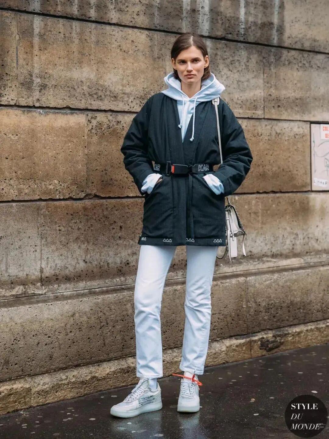 柔软的白色卫衣是卫衣界中的扛把子,搭配纯色款的羽绒服更时髦,在冬日也可以保留一份慵懒随性感。