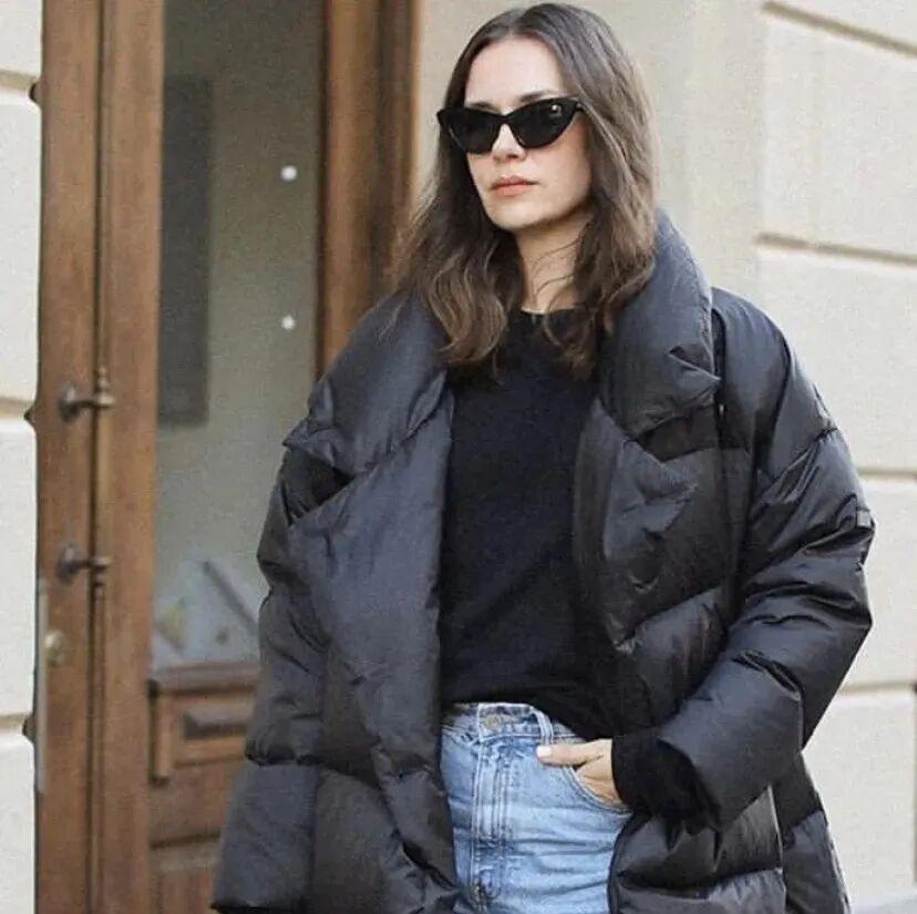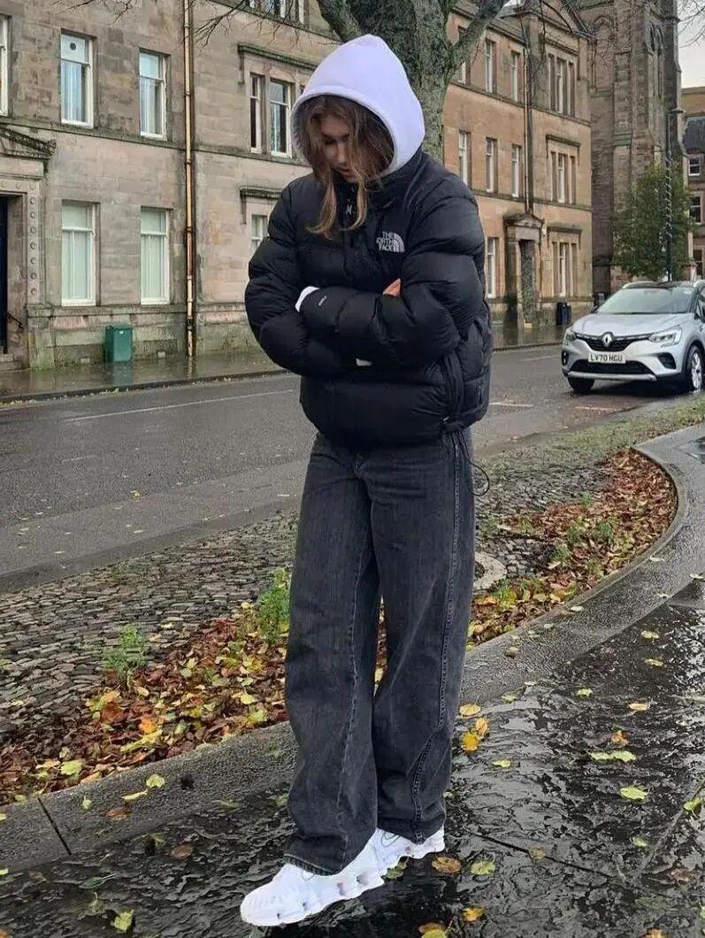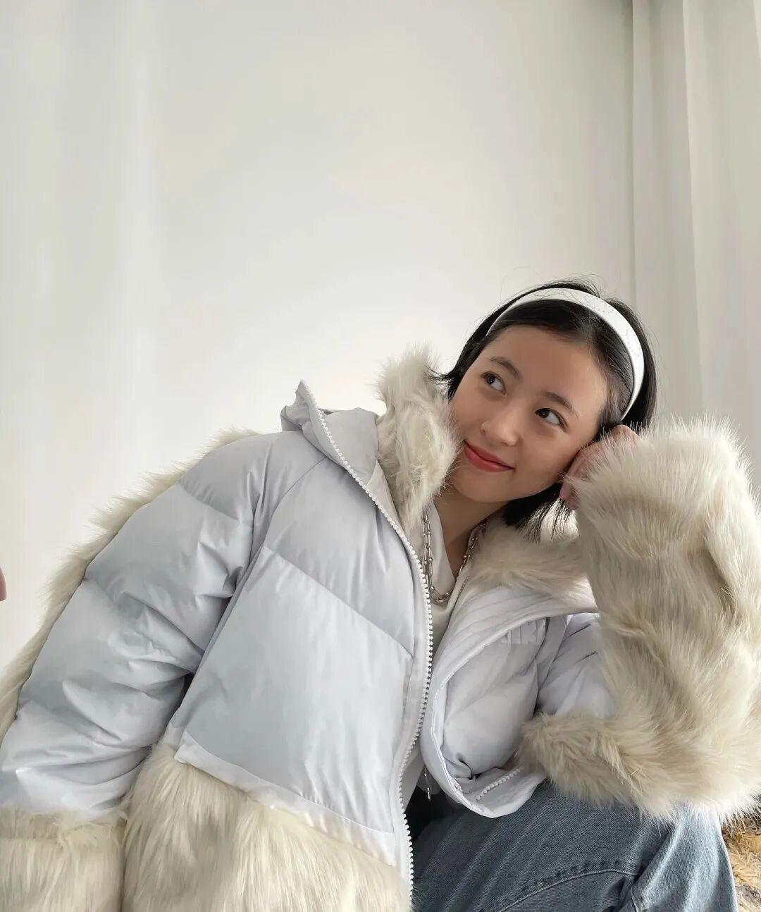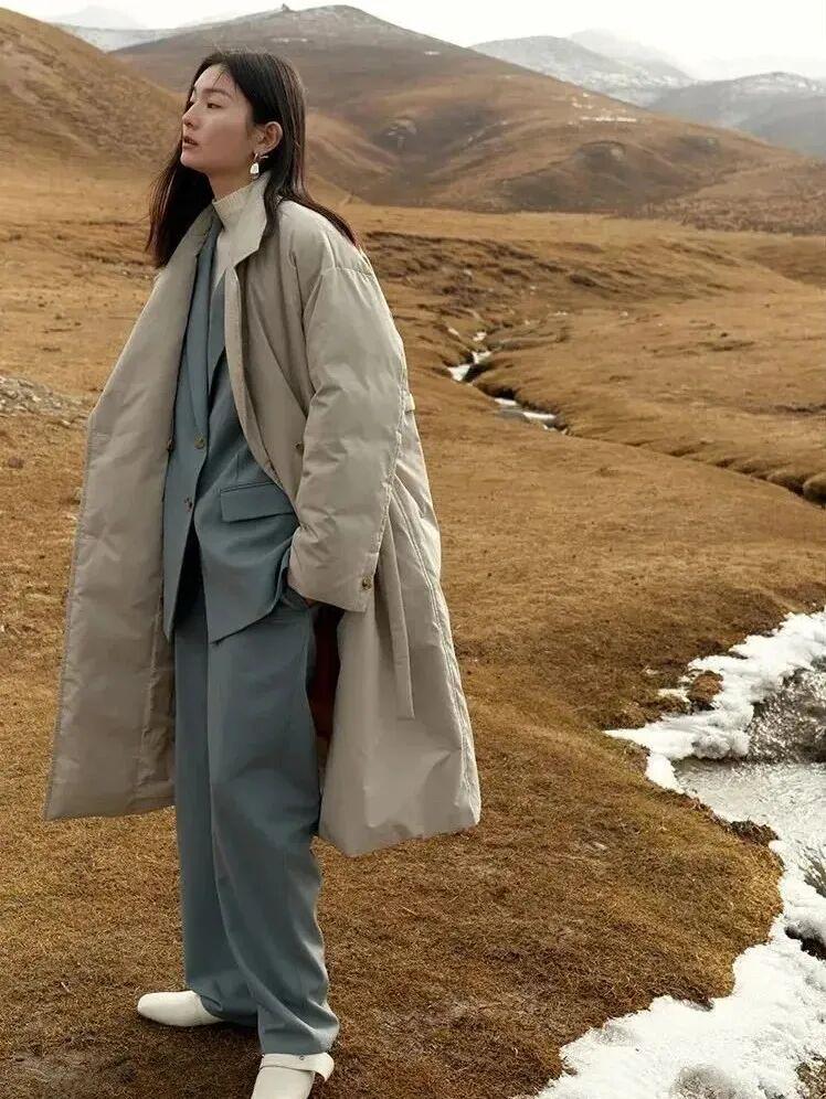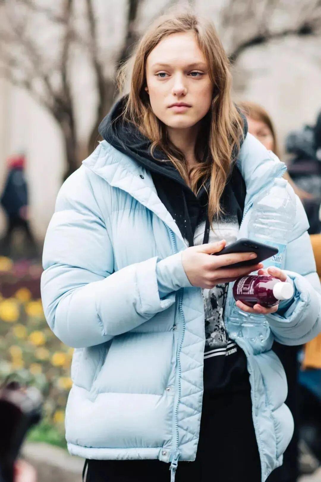 有些羽绒服容易显胖,最好是敞开穿,露出内搭的高腰线,南方集美大胆学,但北方天气太冷还是捂严实点比较好~
