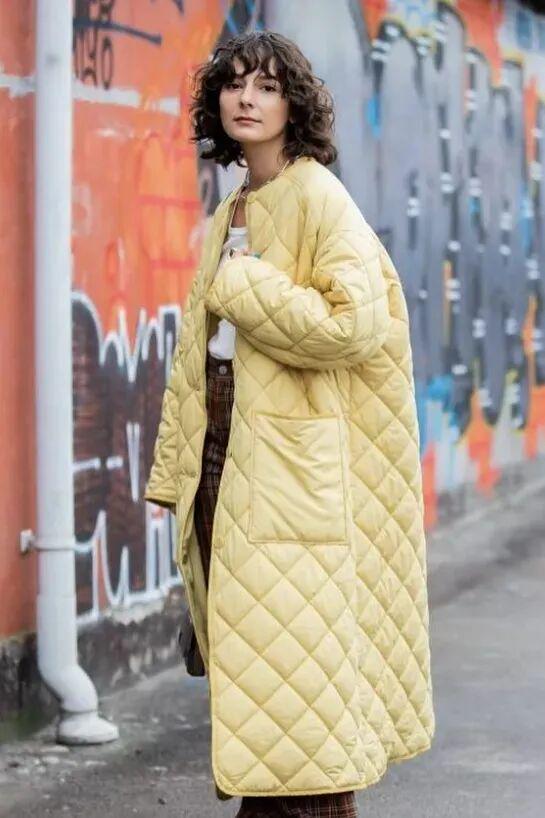 或是内搭换成简约西装外套和亮色长裤,像是这种黄色就能给冬天带来不少活力,酷飒之中带一点点温柔。