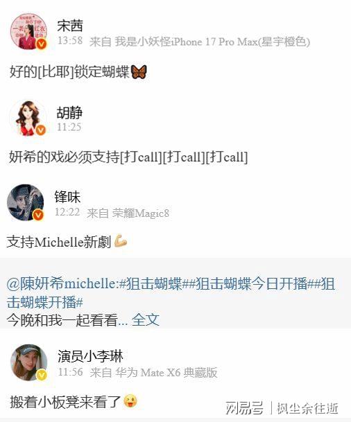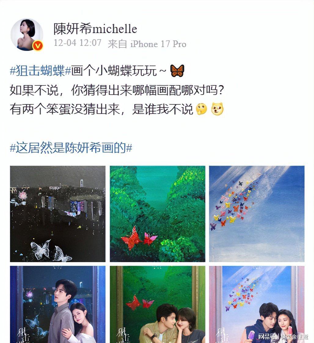 但陈妍希也很努力,新剧《狙击蝴蝶》将在12月4日上映,陈妍希连发几条动态来剧宣,而且好人缘基本请来了所有娱圈的明星帮她宣传,宋茜、谢霆锋、小李琳等等,大明星、小明星、相熟的,不怎么熟的都请来了,可见人缘不错。