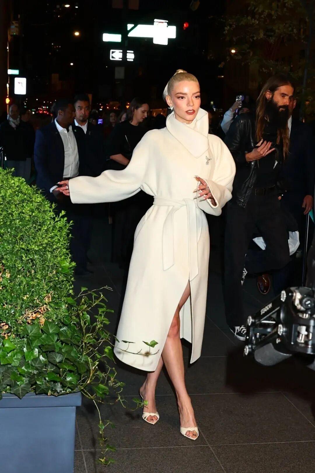 甜与优雅可以结合?Anya Taylor-Joy身上的白大衣做到了。细腻的羊绒搭配修身版型,宛如画中人。
